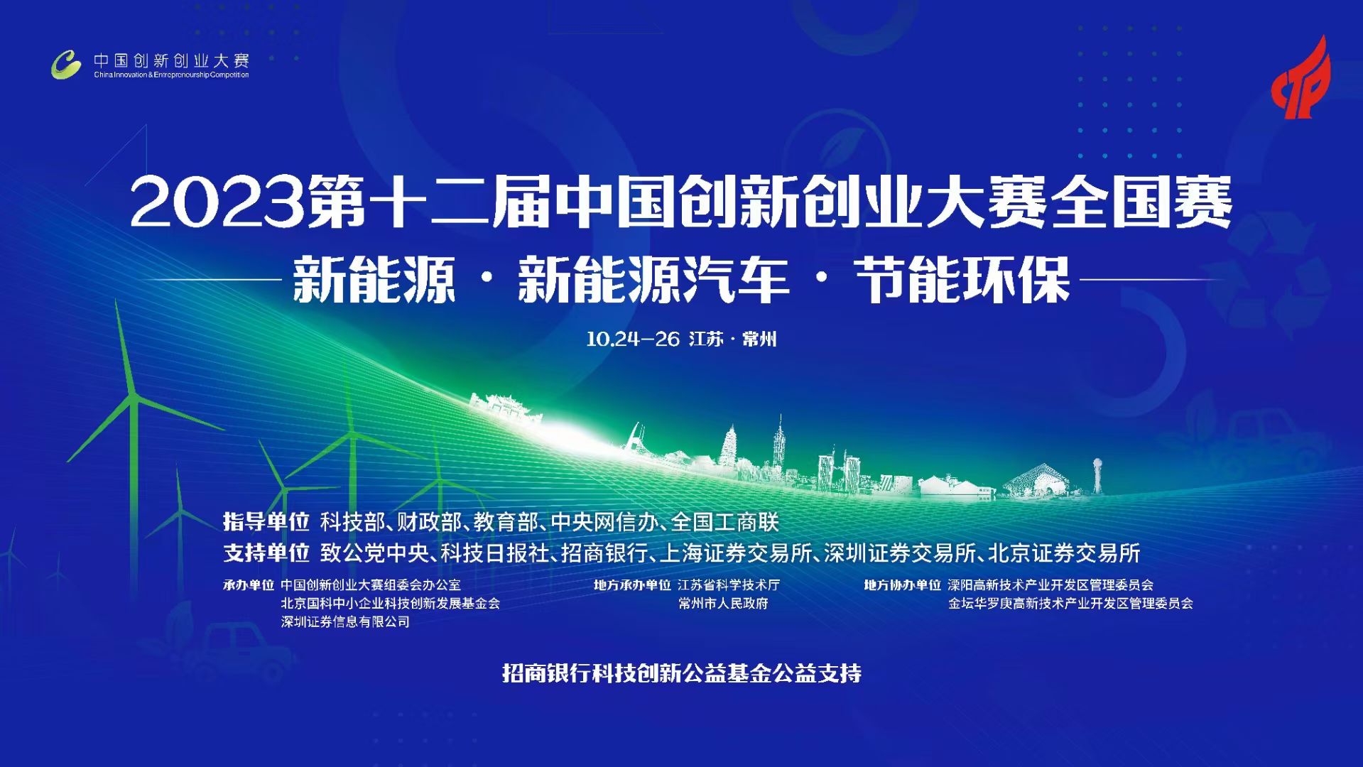 10月24日-26日,2023第十二屆中國(guó)創(chuàng)新創(chuàng)業(yè)大賽新能源、新能源汽車、節(jié)能環(huán)保全國(guó)賽在江蘇常州舉辦。