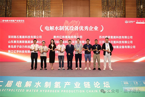 論壇結(jié)束后,舉辦了優(yōu)秀企業(yè)頒獎(jiǎng)典禮,質(zhì)子動(dòng)力榮獲“2024電解水制氫設(shè)備優(yōu)秀企業(yè)-綠氫榮耀獎(jiǎng)”。
